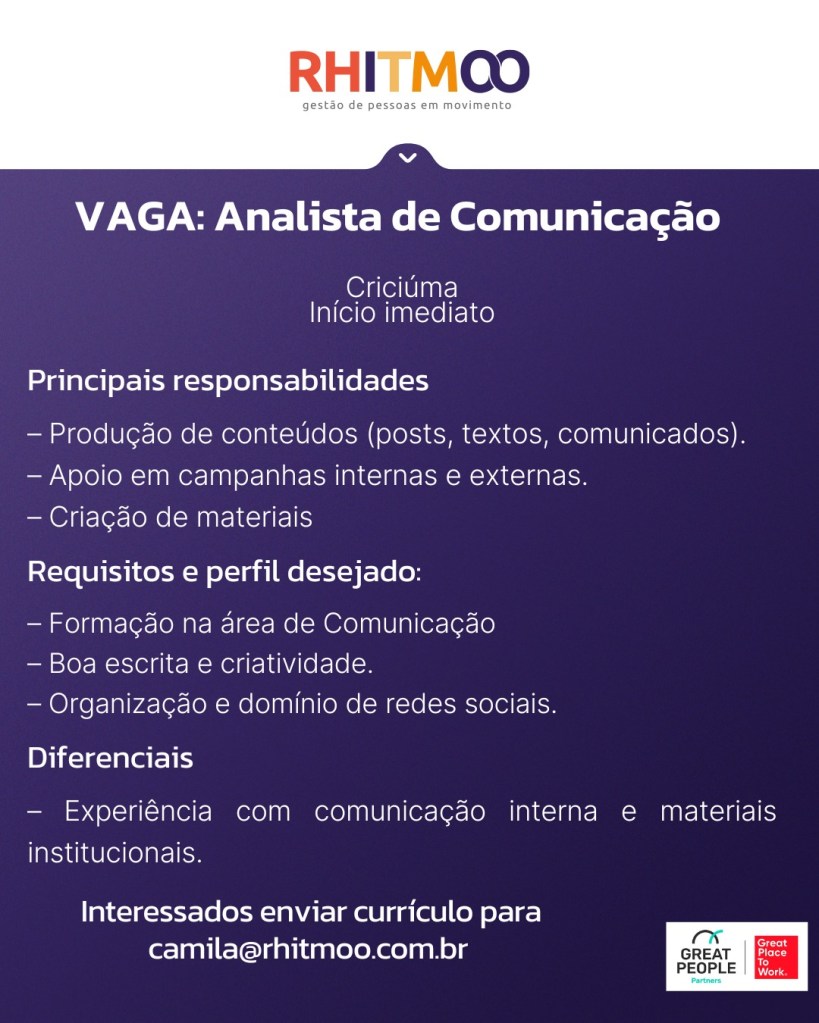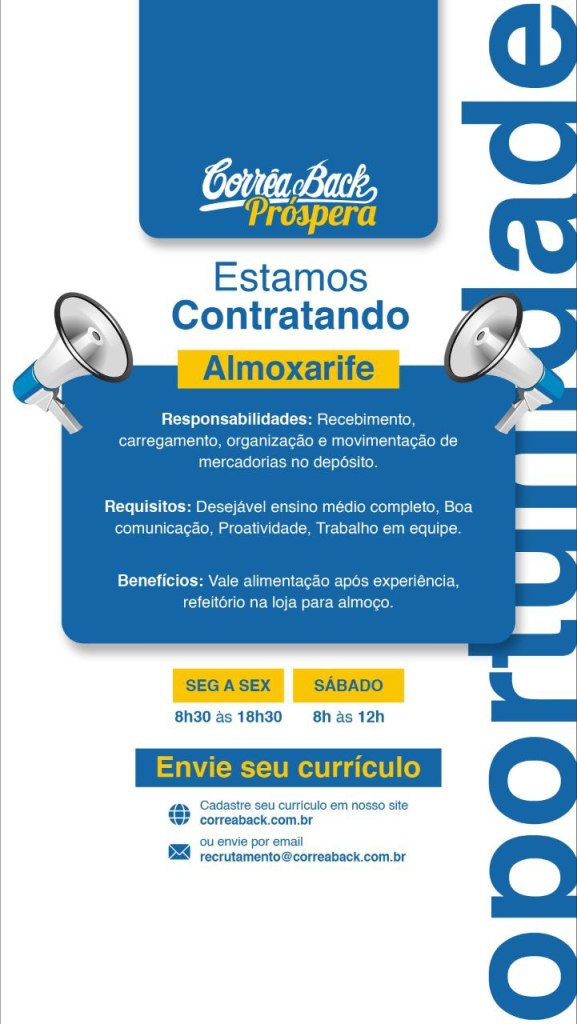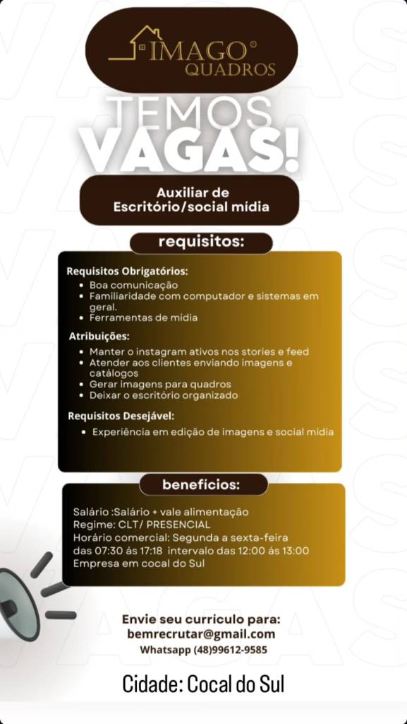 Divulgue as vagas da sua empresa aqui e em nossas redes sociais no Instagram, LinkedIN, Threads, Telegram e WhatsApp, procure por @recrutamentoscriii